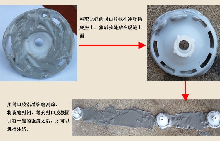 可与混凝土裂缝修复胶配套使用,混凝土裂缝灌浆修补时,封闭裂缝表面和粘贴灌浆嘴;